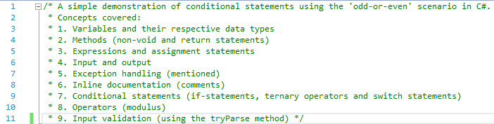 /* A simple demonstration of conditional statements using the 'odd-or-even' scenario in C#.