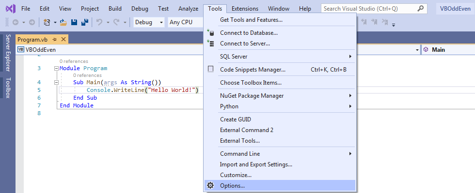 In this scenario, there are two methods (the modulus_check and the Main). The Main is the method which is first executed, and where other methods can be invoked (called). The modulus_check method simply calculates returns the remainder using the modulo 2 based on the input which is subsequently passed as a parameter to the modulus_check method from the Main method as shown below.